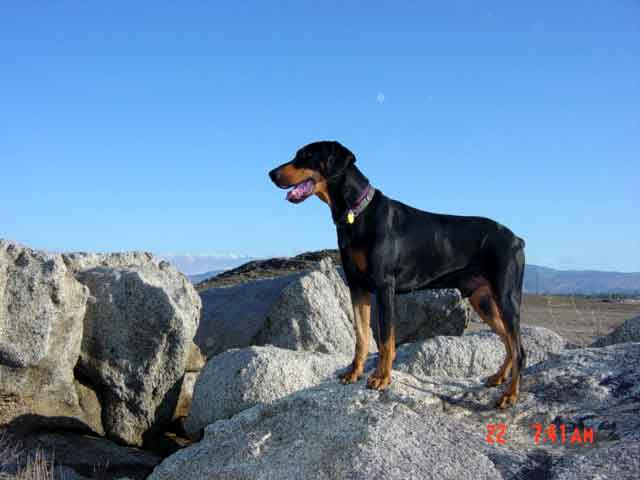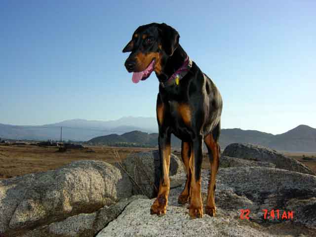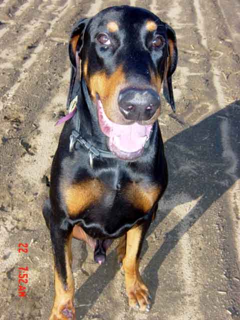 My name is Jake and I was adopted by my Ma and Pa from the Ramona Animal Shelter in San Jacinto, CA. I'm a Doberman Pincer. They figure I was about a year old, so, my birthday was chosen as September 28, 2003. That's the date in 2004 that I was found by Animal Control as a stray.